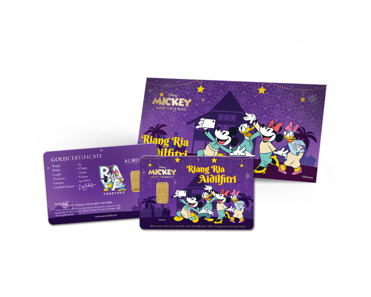 DISNEY x AURORA ITALIA 1g 999.9 Mickey & Friends: Riang Ria Aidilfitri Limited Edition Gold Bar